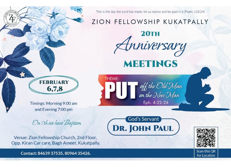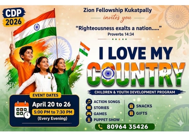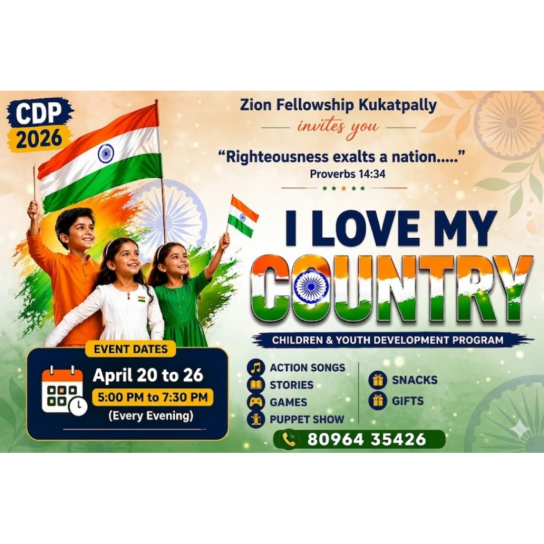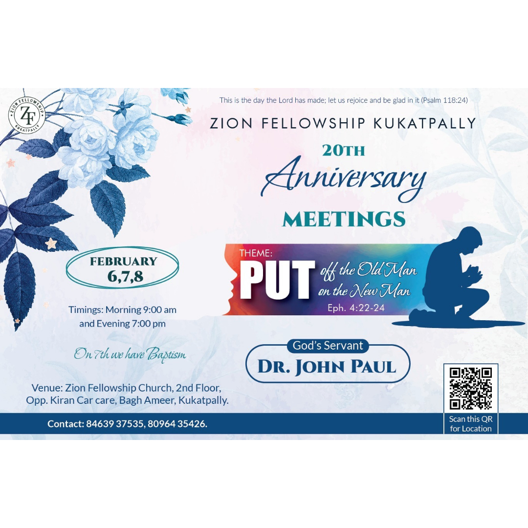 Zion Fellowship, based in Kukatpally, Hyderabad, is a Christ-centered evangelical church committed to raising disciples who live according to the Word of God and the power of the Holy Spirit. With a strong emphasis on sound biblical teaching, practical Christian living, servant leadership, Spirit-empowered growth, and mission-minded outreach, the fellowship seeks to see believers transformed into the image of Christ and equipped to impact their families, communities, and the nations. Through its Truth Matters YouTube ministry (https://www.youtube.com/@TruthmattersAbhishek/featured), the church shares in-depth teachings, discipleship messages, and spiritual growth sessions to help believers deepen their walk with God, while its Instagram presence (https://www.instagram.com/truthmatters_abhishek/) provides regular encouragement, sermon clips, and updates for the wider community. Zion Fellowship’s vision is to help believers put off the old man, put on the new man, walk in holiness and obedience, grow in prayer and the Word, and become effective witnesses for Christ.